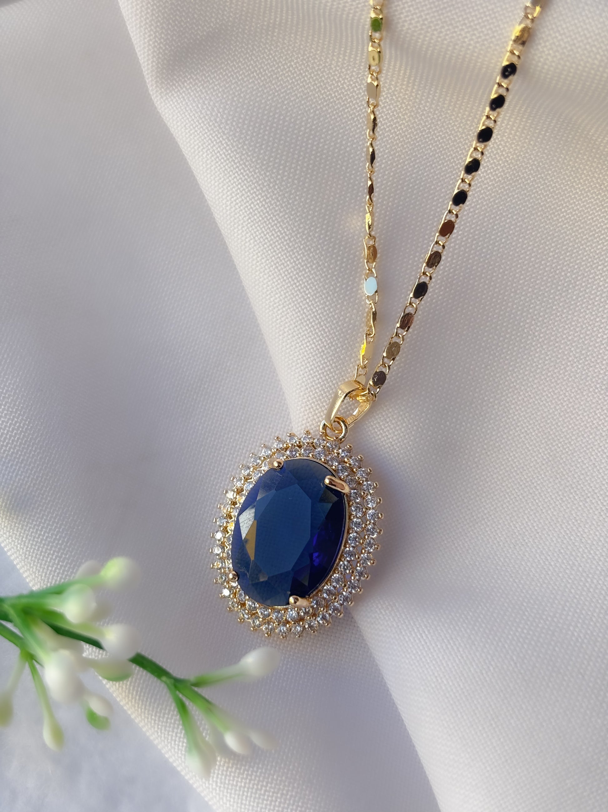 Collar Oro Laminado 24K Con gema de Color Azul