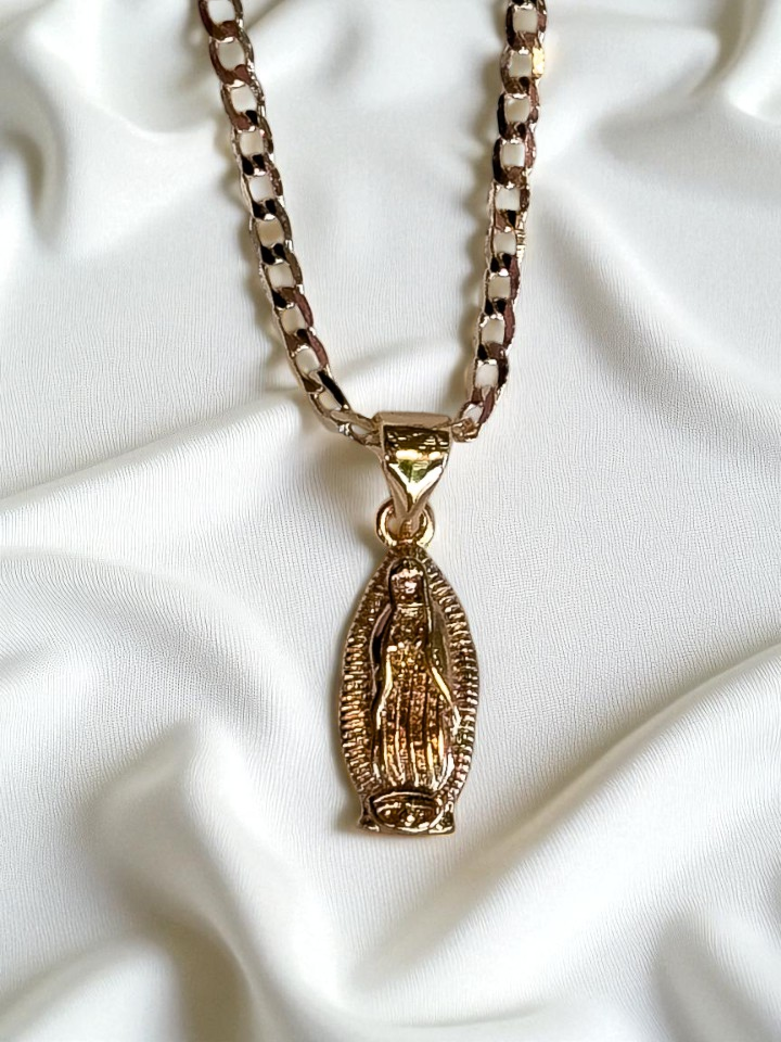 Pequeña virgencita en un cálido oro rosado, para una fe minimalista.