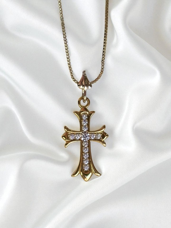 Medidas: Cruz: 26mm x 17mm. Cadena 50cm a elegir entre existencias.