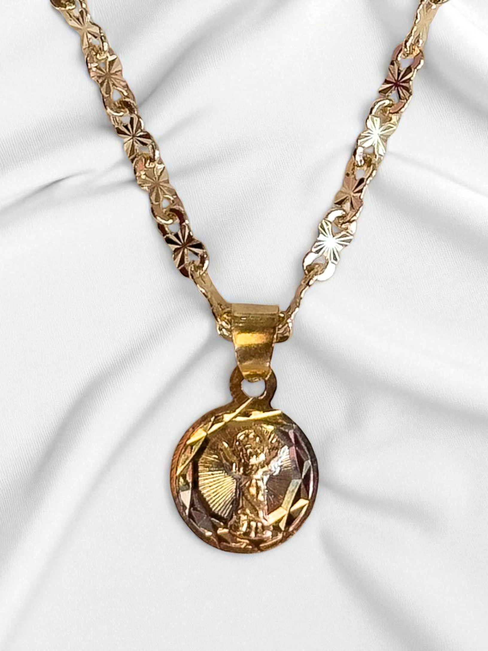 Medidas: Medalla 10mm de diámetro. Cadena de 50cm a elegir entre existencias.