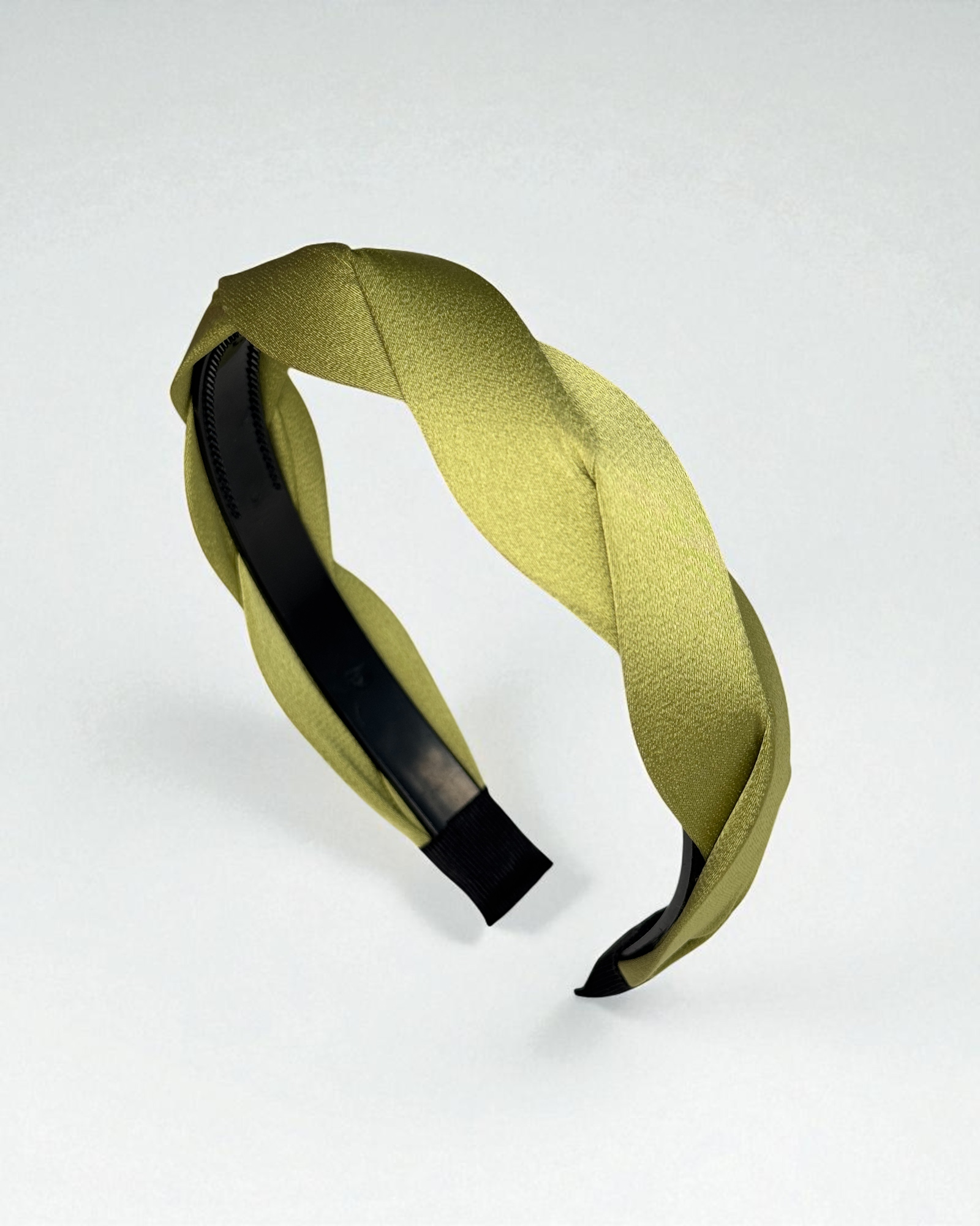 Diadema Trenzada Básica en color verde, delgada de tela lisa y con diseño muy ligero.