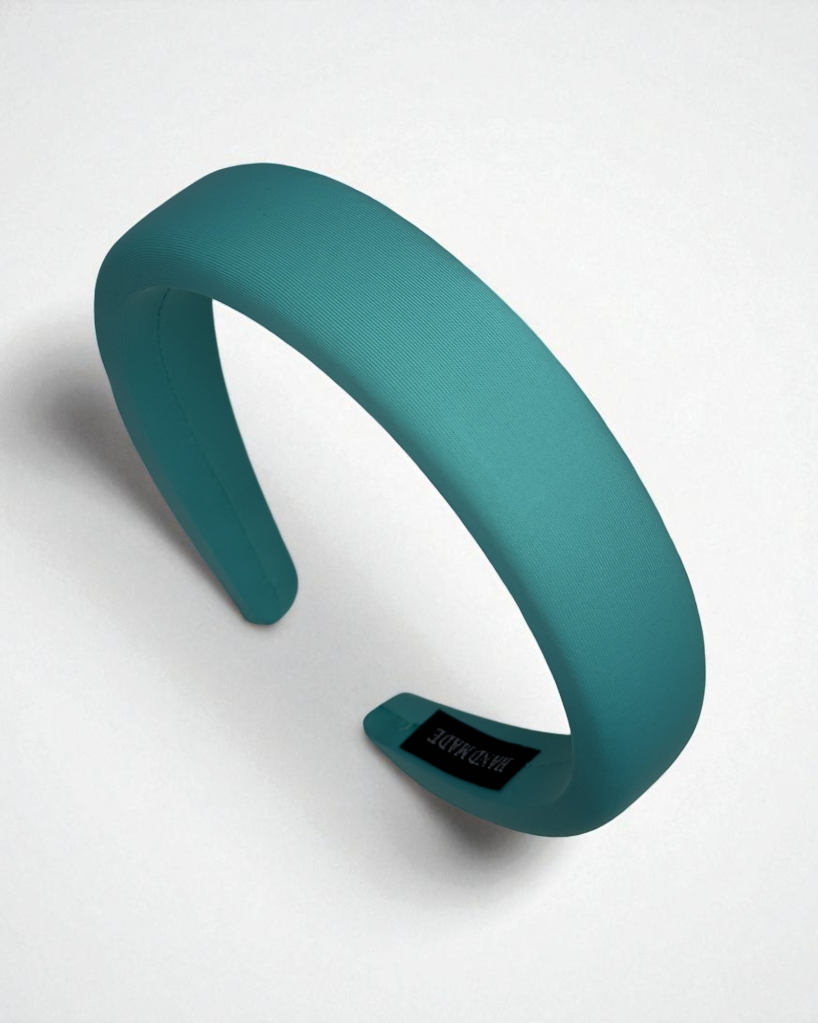 Diadema basica mediana en color verde petróleo, ideal para llevar todo el día sin molestias.