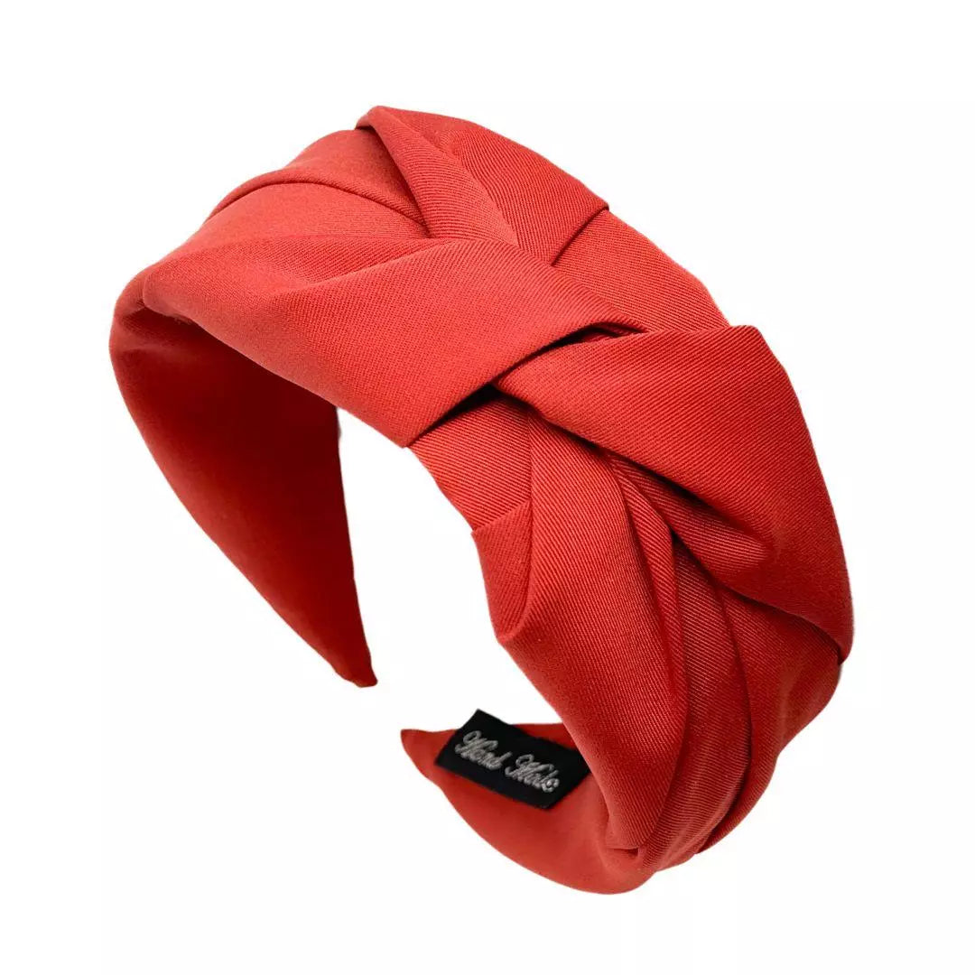 Diadema con nudo ancho de tela, en color naranja quemado, hecha para refinar tu outfit de todos los días.