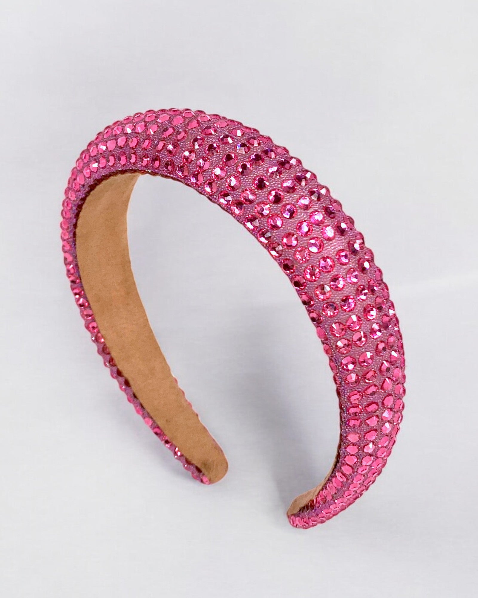 Diadema Belinda en color fucsia, semi alta, diseño muy ligero y versátil, ideal para cualquier ocasión.