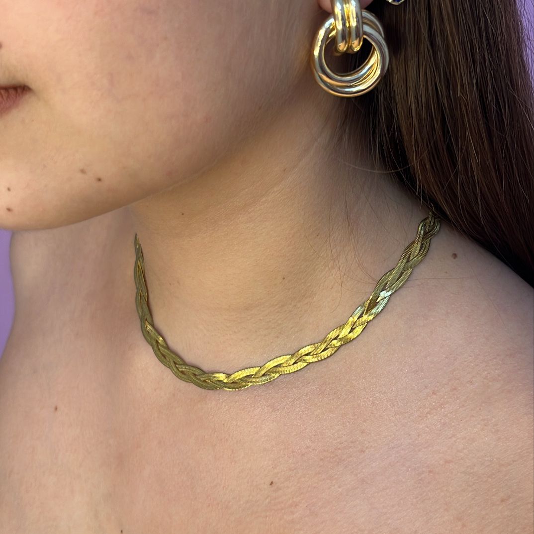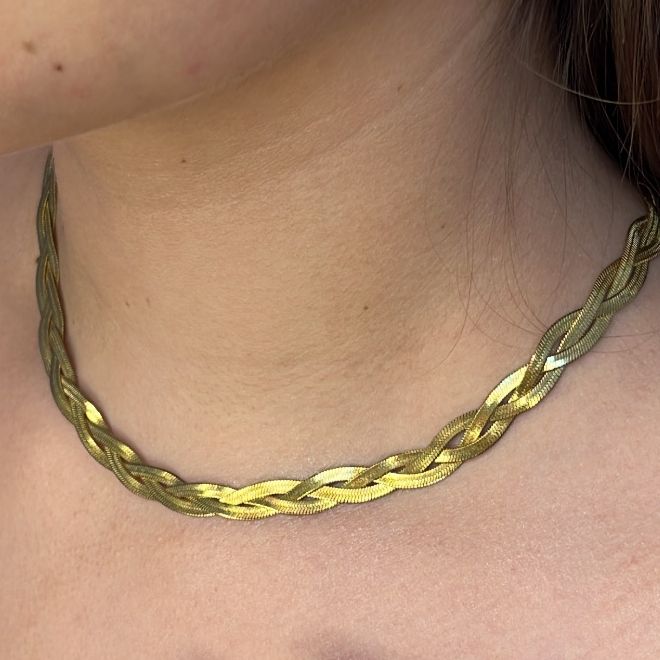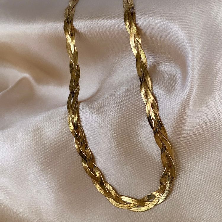 Cadena Gargantilla Trenzada Dorothea de 44cm, triple plisada. Joyería Fina de Oro Laminado 24k