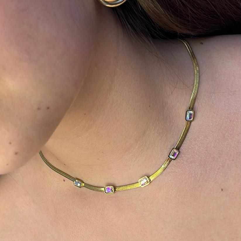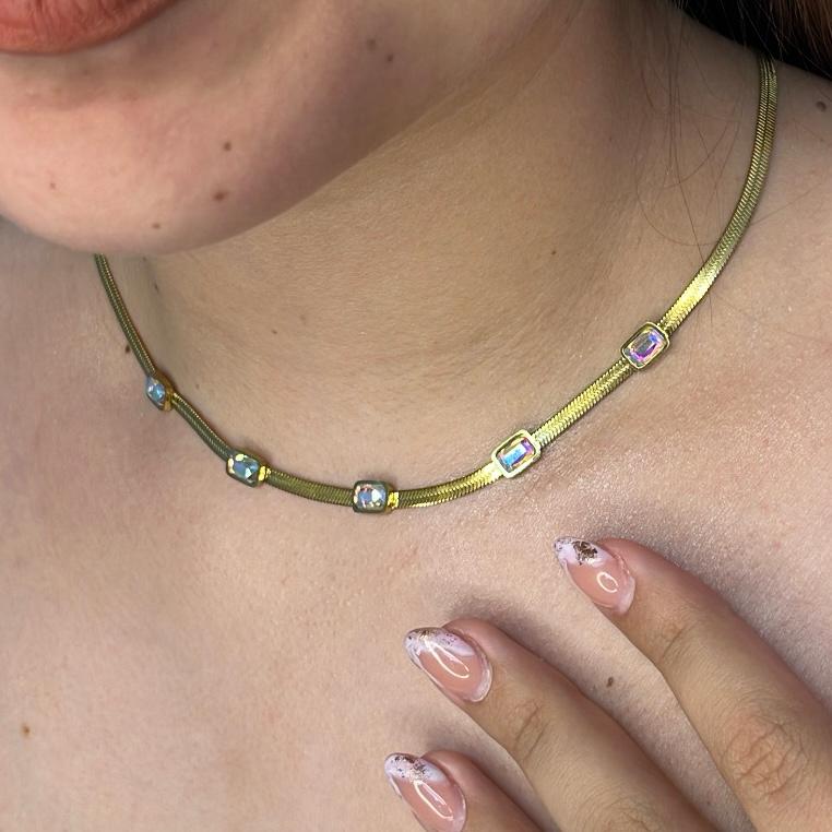 Gargantilla Tornasol. Largo de 46cm. Joyería Fina de Oro Laminado 24k.