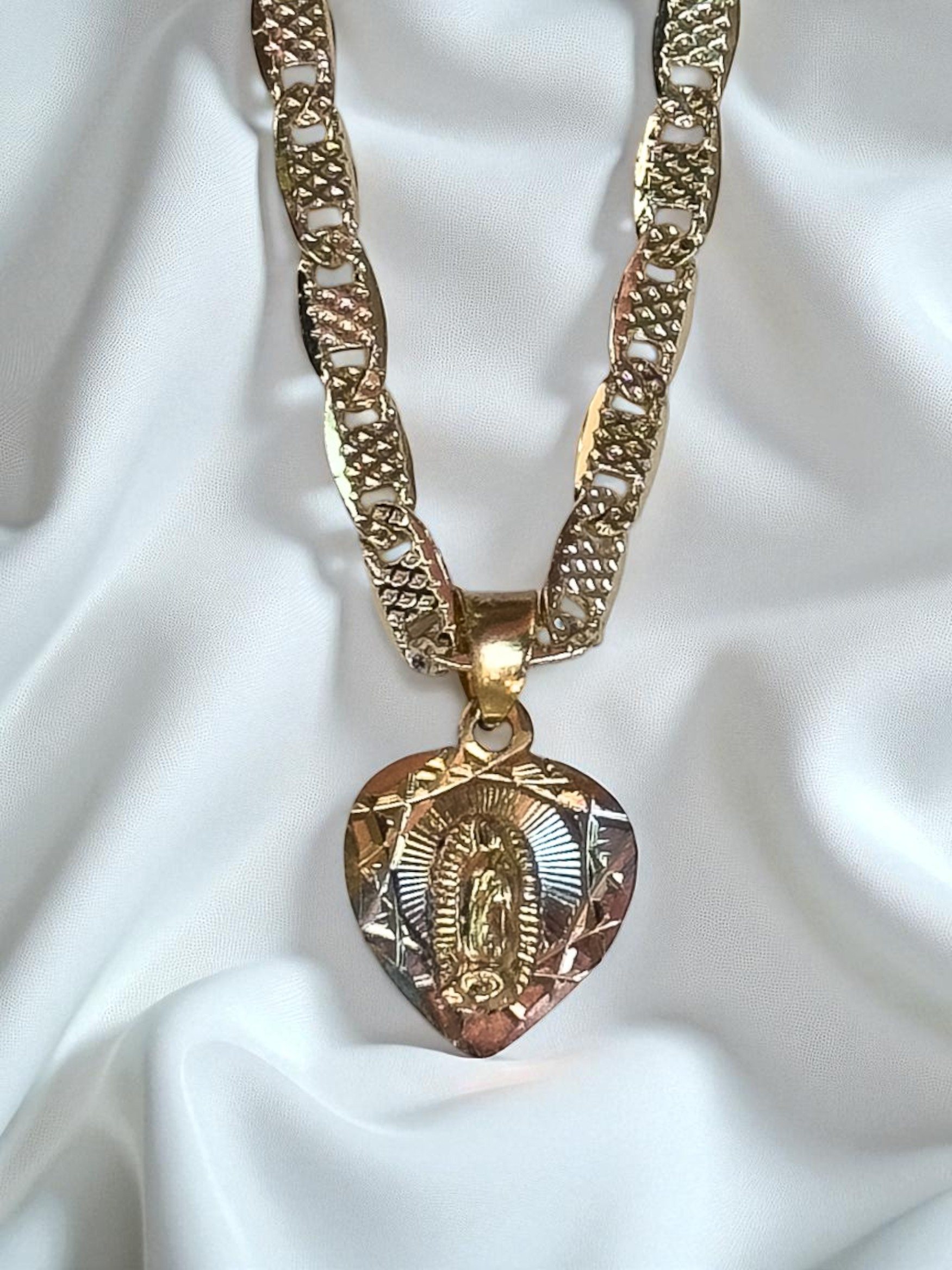 Collar Virgencita Corazón 3 Oros
