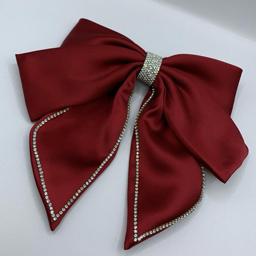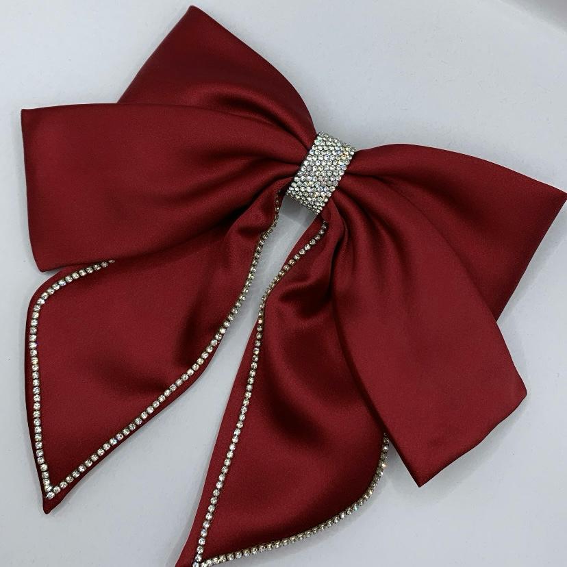 Moño Brillante Red, color rojo vino de seda, con pequeños cristales en adorno.