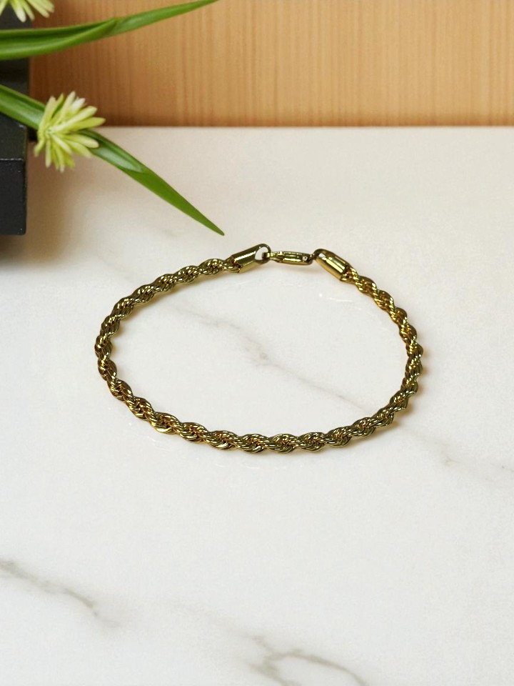Pulsera tipo Torzal. Joyería Fina de Oro Laminado 24K. Medida 21cm x 5mm.